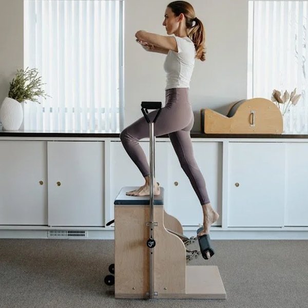 The chair supports a wide variety of exercises including leg presses, arm work, balance challenges, and core strengthening. It is especially effective for improving stability and mobility.